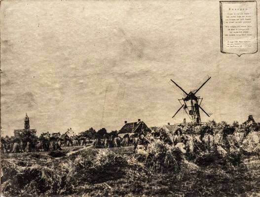 Zicht op Kanegem met Sint-Bavokerk en Billiëts molen of Plaetsemolen.